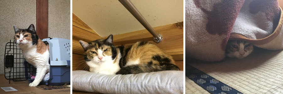 Fay is now living with us in a foster home situation in Kyoto. We hope to continue the work we’ve done with her over the next few months in the hope that she becomes even more socialized. We first visited the shelter in Spring 2016 and returned in Winter 2017. It was clear that Fay either remembered us or had made significant ongoing progress, as she took treats from our hands within the first week. She is now happy to be stroked even when not eating and when there is no food around! She purrs, approaches us for food and even occasionally rolls on her back during head scratches. At the moment she very definitely has people that she knows and trusts and then everyone else who is still greeted by the old hissing Fay - but that’s fair enough.