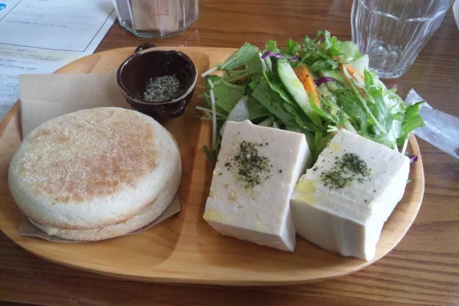 The first of these is a little bakery right across the street from Club Lohas, called Comaya. This calming caf? puts on French airs with its Brigitte Bardot on the hi-fi and its use of Swiss and French butter in their excellently delicious croissants (my unrefined palate can’t tell the difference between them, but my favorite is the chocolate croissant). They are decked out in carefully edited vintage furniture, with painted wooden chairs and comfortable sofas, and one wall looks out onto a small fishing pond, ringed with hydrangeas in the spring and summer. They make a mean homemade English muffin-based lunch plate, with a heap of fresh salad and gorgeous local tofu sprinkled with herb salt.